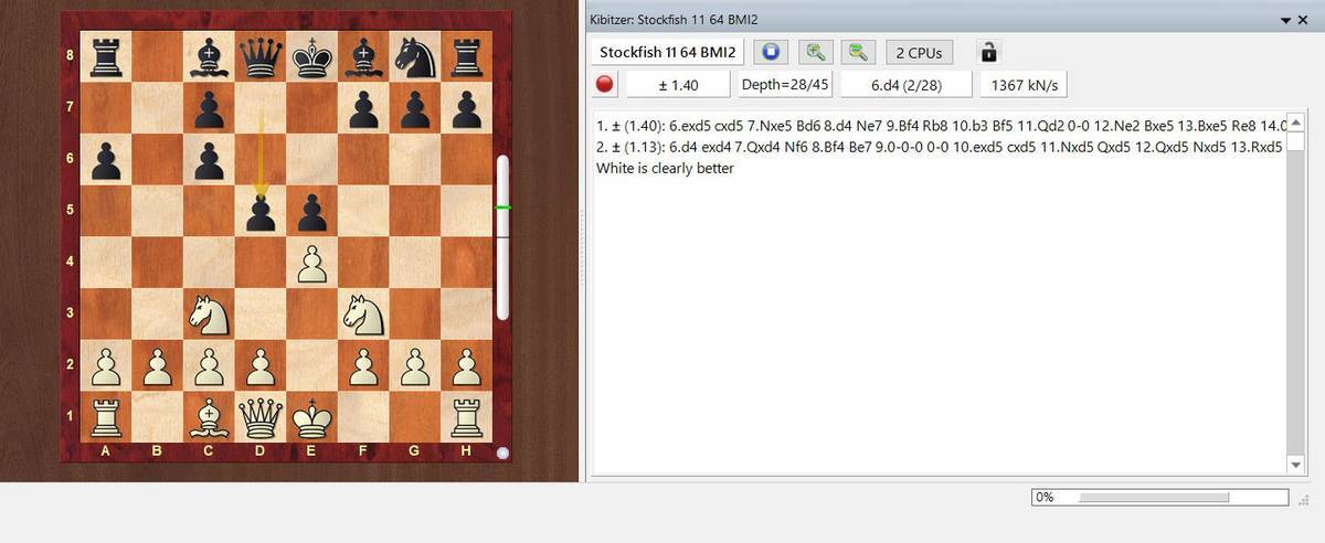 Анализ партии в ChessBase 16 c помощью движка Stockfish 11