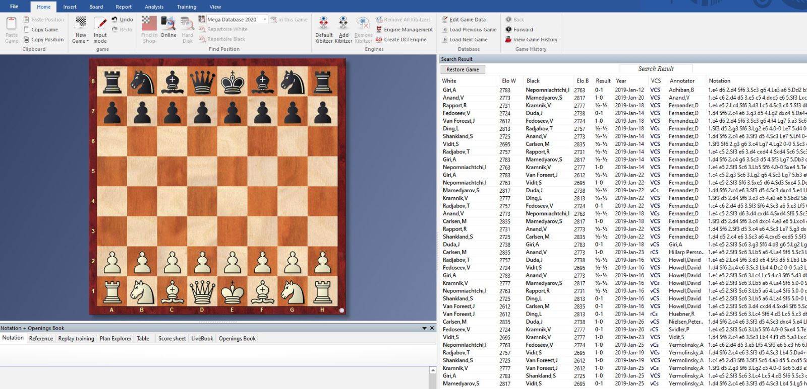 Hundreds of thousands of new games played in 2019 were added to the Mega Database 2020. A lot of these games were played by renowned grandmasters and are annotated by well-known ChessBase authors.