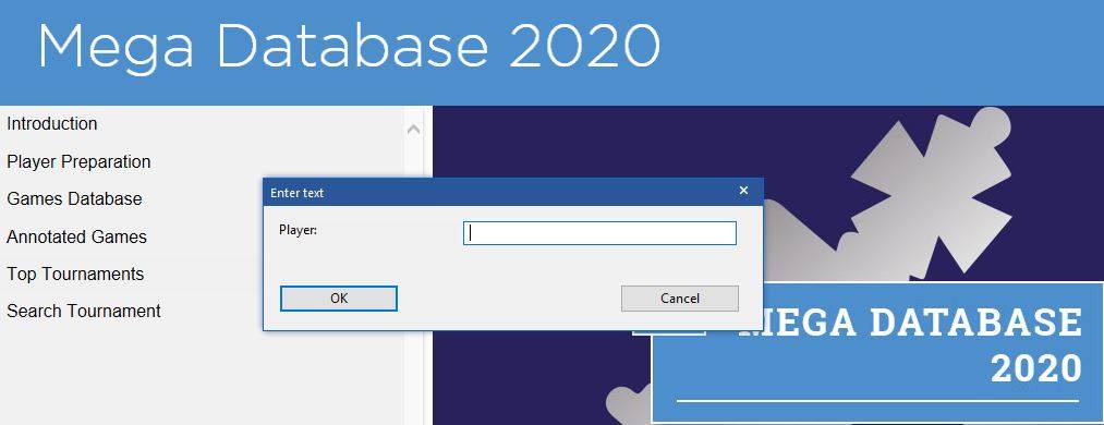 Navigating the database is easier than ever: the Mega Database menu makes it easy to prepare for your games, to search for tournaments, to find annotated games or to access all the games in the database.