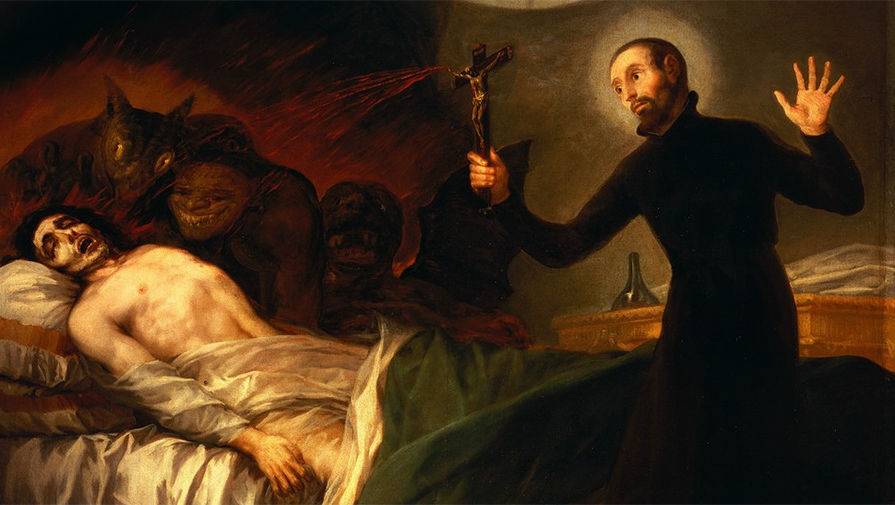 Тема смерти становится постоянной в творчестве Гойи. Католическое мировоззрение и смерть переплетаются в работе «Святой Франциск Борджиа у гроба умирающего грешника».