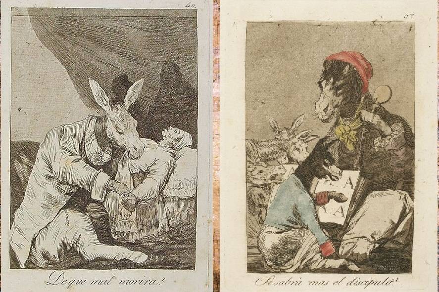 Современную ему Испанию Гойя изобразил в серии гравюр известной под названием «Капричос». Самая известная работа в серии – «От какой болезни он умрет?». Художник вновь обращается к страшной теме, изображая тело при смерти, теперь уже в контексте судьбы страны.