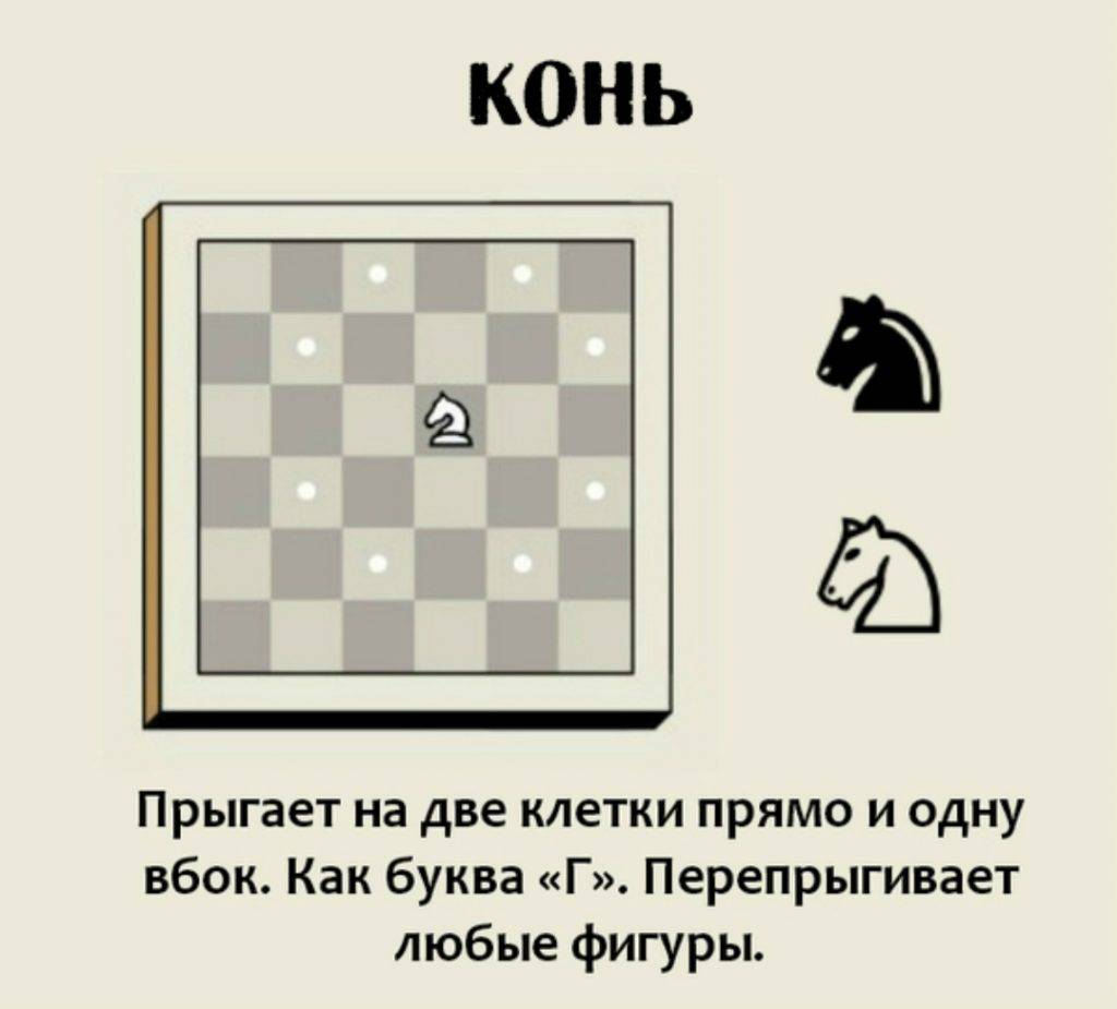 - Конь — это единственный юнит, который не ходит ровно по прямой или диагонали. Передвижение похоже на букву «Г» или латинскую «L». Перемещаться так конь может в любую сторону, а значит игроку доступно 8 вариантов ходов. Даже закрытым другими фигурами конь несет опасность для противника, так как может перепрыгивать другие юниты. При атаке он занимает место битой фигуры.