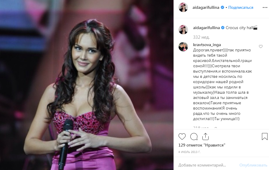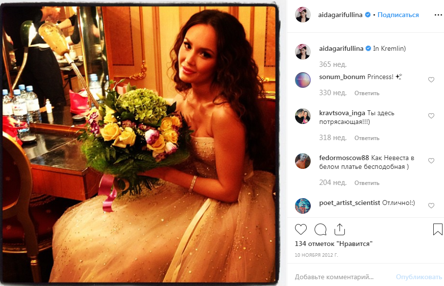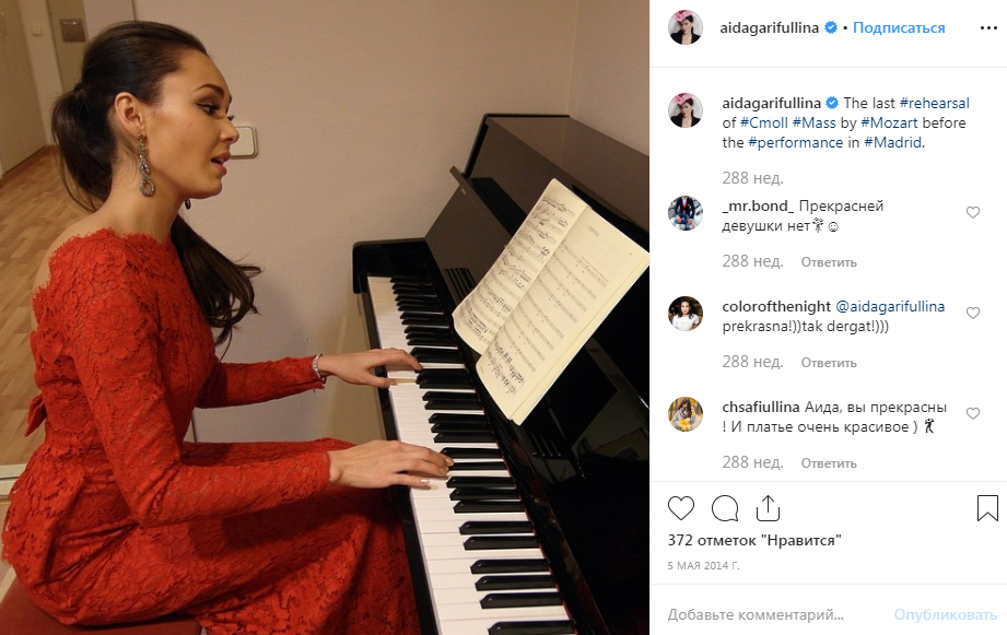 Новую карьерную ступеньку Аида взяла в 2013 году, когда ей посчастливилось выступить с самим Пласидо Доминго. Девушка стала победительницей его конкурса «Опералия-2013». В том же году она выступила на открытии Универсиады в Казани и имела огромный успех, а кроме того спела на одной сцене с другим знаменитым певцом Андреа Бочелли. Аида Гарифуллина и Пласидо Доминго Год спустя Аида с блеском выступила на концерте «Дмитрий Хворостовский и друзья», благодаря чего ее заметили в России и она стала частой гостьей на федеральных каналах. Вскоре девушка выступила на юбилейном вечере композитора Игоря Крутого. В начале сезона 2014/15 Аида стала солисткой Венской оперы. Как стало известно uznayvse.ru, певица признавалась, что могла бы попасть туда гораздо раньше, но послушалась подружек-завистниц, которые убедили её, что пройти прослушивание можно только раз в три года.