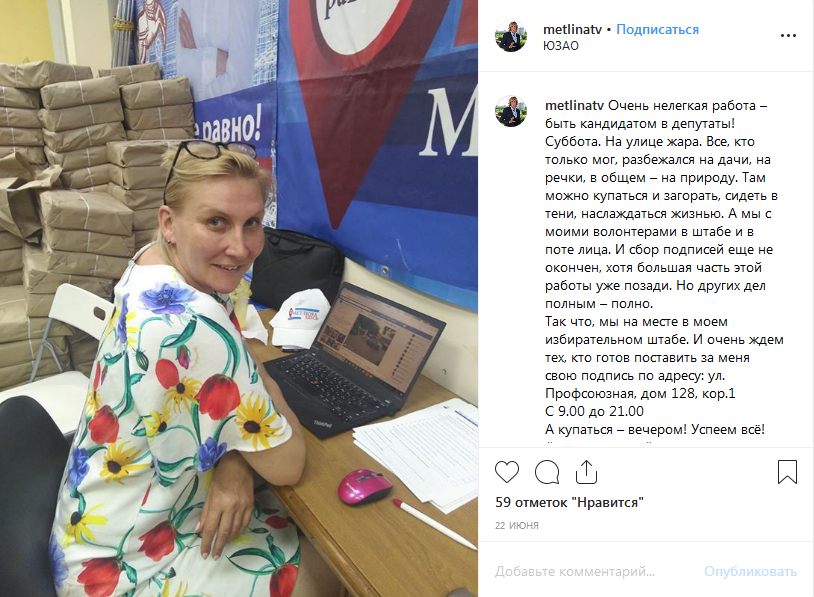 В 2019 году журналистка выдвинула свою кандидатуру на пост депутата в Московскую городскую Думу; чтобы одержать победу, ей надо набрать около шести тысяч подписей. У избирателей к ней сложилось особое доверие, ведь она известна многим москвичам не только как автор своих программ, но и как ответственный человек, выступающий за справедливость и добро.