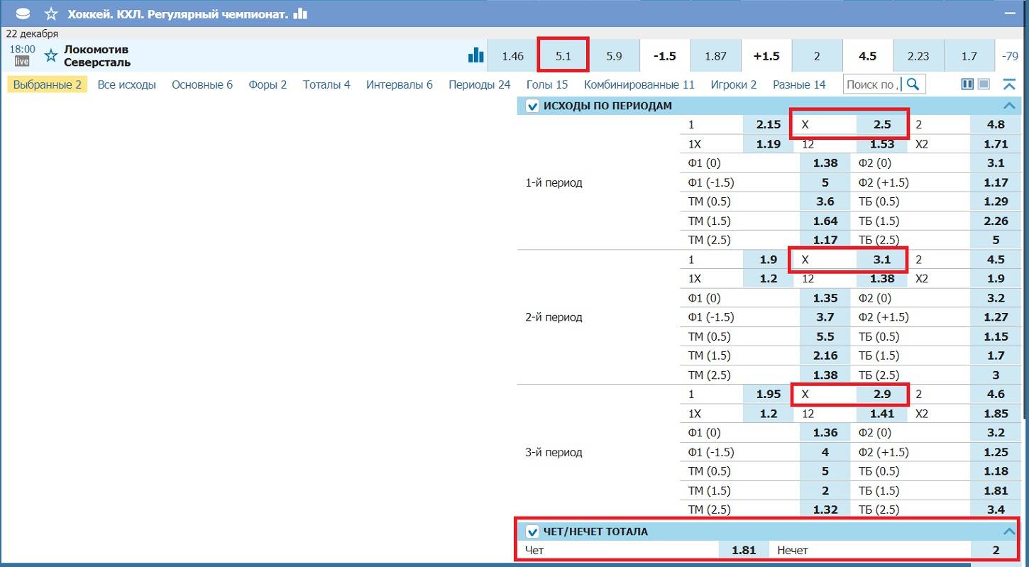 - Встречаются валуйные ставки, когда одна из команд недооценена или переоценена. Валуи в хоккейных периодах встречаются часто, поскольку даже аутсайдер может отыграть один из периодов вничью с фаворитом.