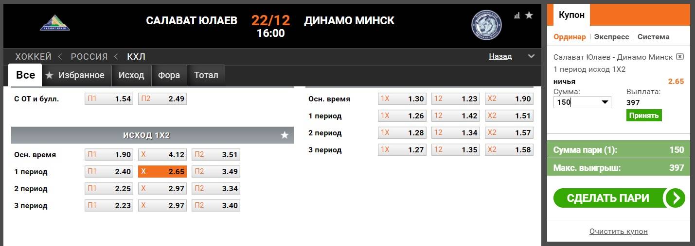 Для того чтобы сделать ставку на ничью в периоде, выбирается матч в линии, нажимается Х среди возможных исходов в росписи, после чего событие автоматически направляется в купон. Если внесено несколько событий, то может быть оформлен «экспресс» или «система». Заполняется сумма ставки и заканчивается оформление купона.