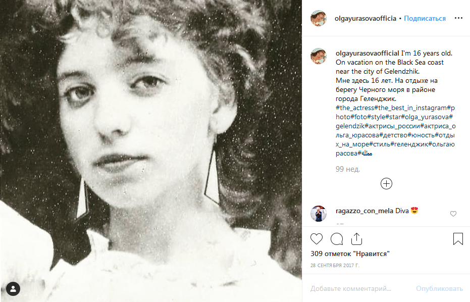 Ольга Юрасова в юности. Фото https://www.instagram.com/olgayurasovaofficial/