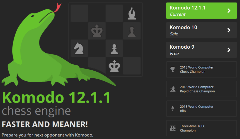 | TCEC Сезон 12 4 | Апр – июл 2018 | Stockfish | 180614 | Комодо | 12.1.1 | + 29 = 62 – 9 |