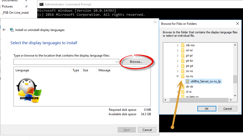 Откройте cab-файл, для чего нажмите кнопку Browse и найдите его на диске. В строке рядом с кнопкой отобразится путь до файла. Если в файле содержится сразу несколько языков, выберите из них те, которые нужно установить. Начните процедуру установки, нажав кнопку Next, и дождитесь её окончания. Затем перейдите в окно«Параметры» или в панель управления Windows, выберите новый ЯП в качестве основного (как это сделать, описано в двух предыдущих пунктах).