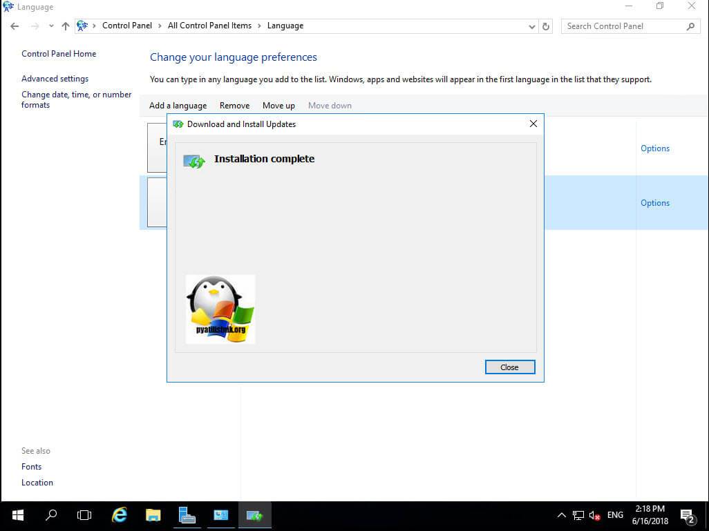 Щёлкнув по кнопке «Загрузить и установить языковой пакет», начните загрузку ЯП выбранного языка