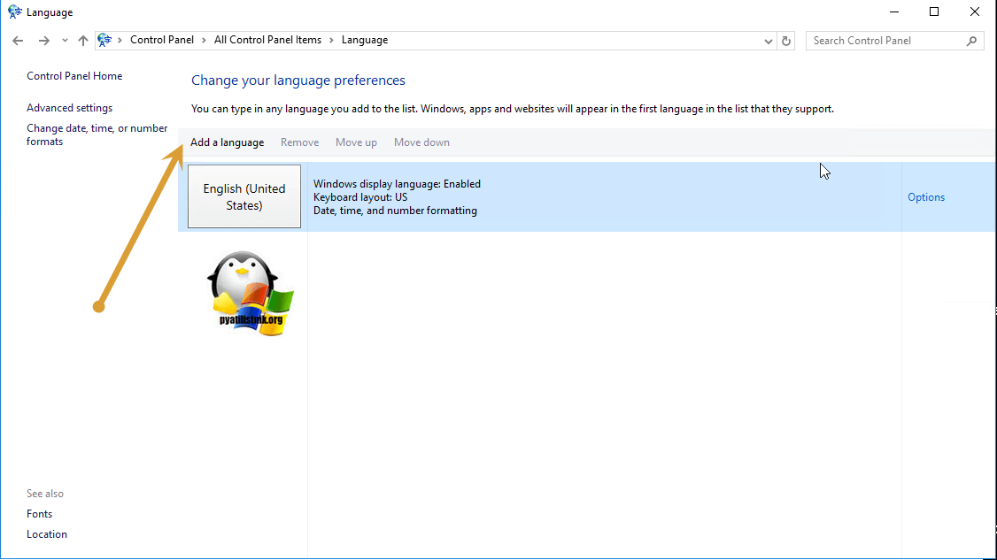 Пользователи, не обновившие ещё свою Windows до версии 1803 или более поздней, могут выполнить смену ЯП через панель управления. Для этого сделайте следующее: