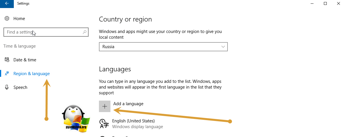 В Windows 10 есть встроенная утилита «Параметры», позволяющая управлять настройками системы. Если ОС на вашем компьютере уже обновлена до версии 1803 April Update, то с помощью этой утилиты можно загрузить дополнительный ЯП. Если у вас установлена более старая версия Windows, то воспользуйтесь любым из описанных ниже методов — результат будет тот же. Для загрузки ЯП с помощью утилиты «Параметры» сделайте следующее: