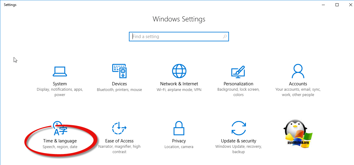 Войдя в консоль «Параметры Windows», разверните блок «Время и язык».