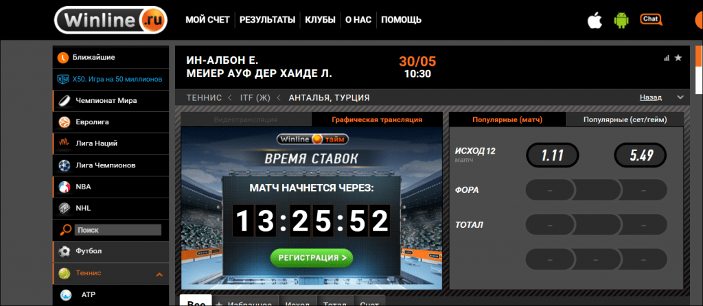 Теннисная линия в букмекерской конторе Бетсити.