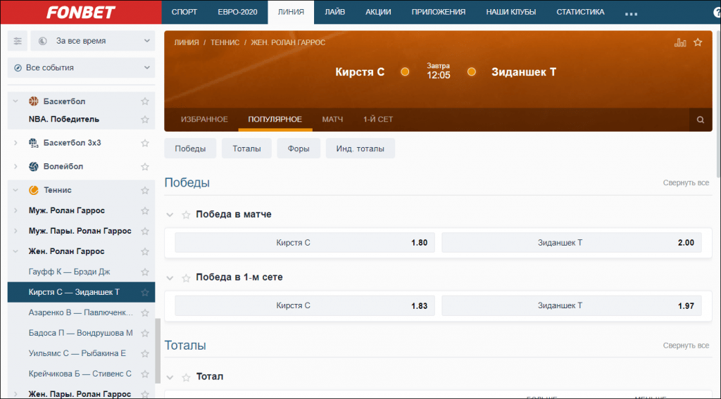 Последний этап – сверяем котировки на победу Гарина в первом сете. Если букмекер предлагает коэффициенты «1.8-2.2» – заключаем пари.