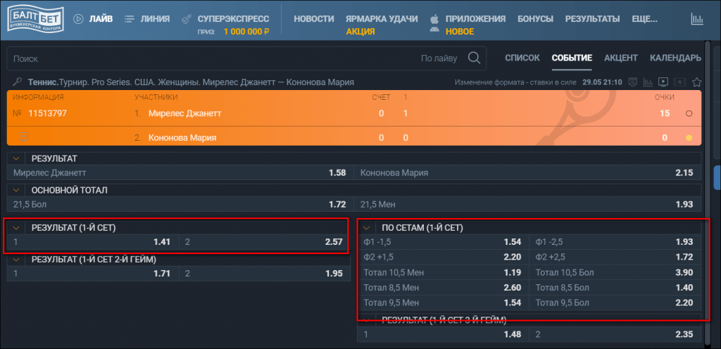 Причин этому несколько: во-первых, полноценная роспись на сеты появляется только в LIVE, во-вторых, большинство стратегий основаны на показателях первого отыгранного сета.