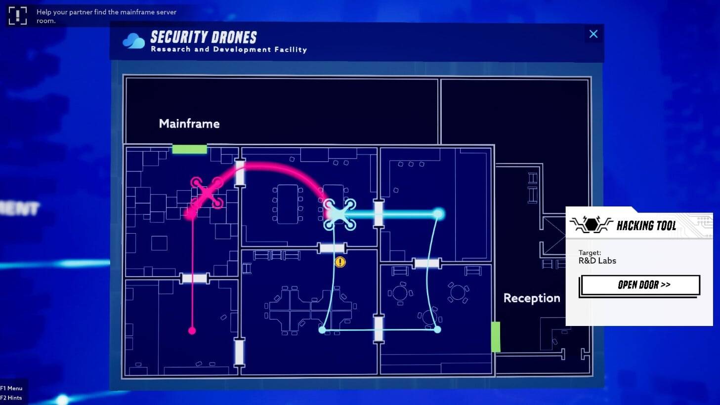 И вот когда после решения головоломки мы ищем, что же делать дальше, ни одна из сторон не может помочь другой. Например, пока шпион ищет компьютер, чей IP-адрес нужен хакеру, тот сидит и смотрит на синее пространство вокруг. Пока хакер взламывает лифт, шпион стоит и ждет его на нужном этаже. Эти моменты встречаются не часто, но они очень выделяются на фоне остальных загадок, требующих участия обоих игроков.